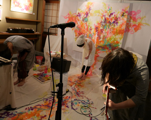 そこを飛び出して床や壁の空間へも、色を繋げてゆくパフォーマンスをしました。