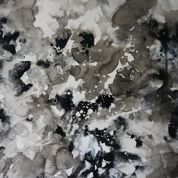 墨、日本画顔料/木製パネルに和紙